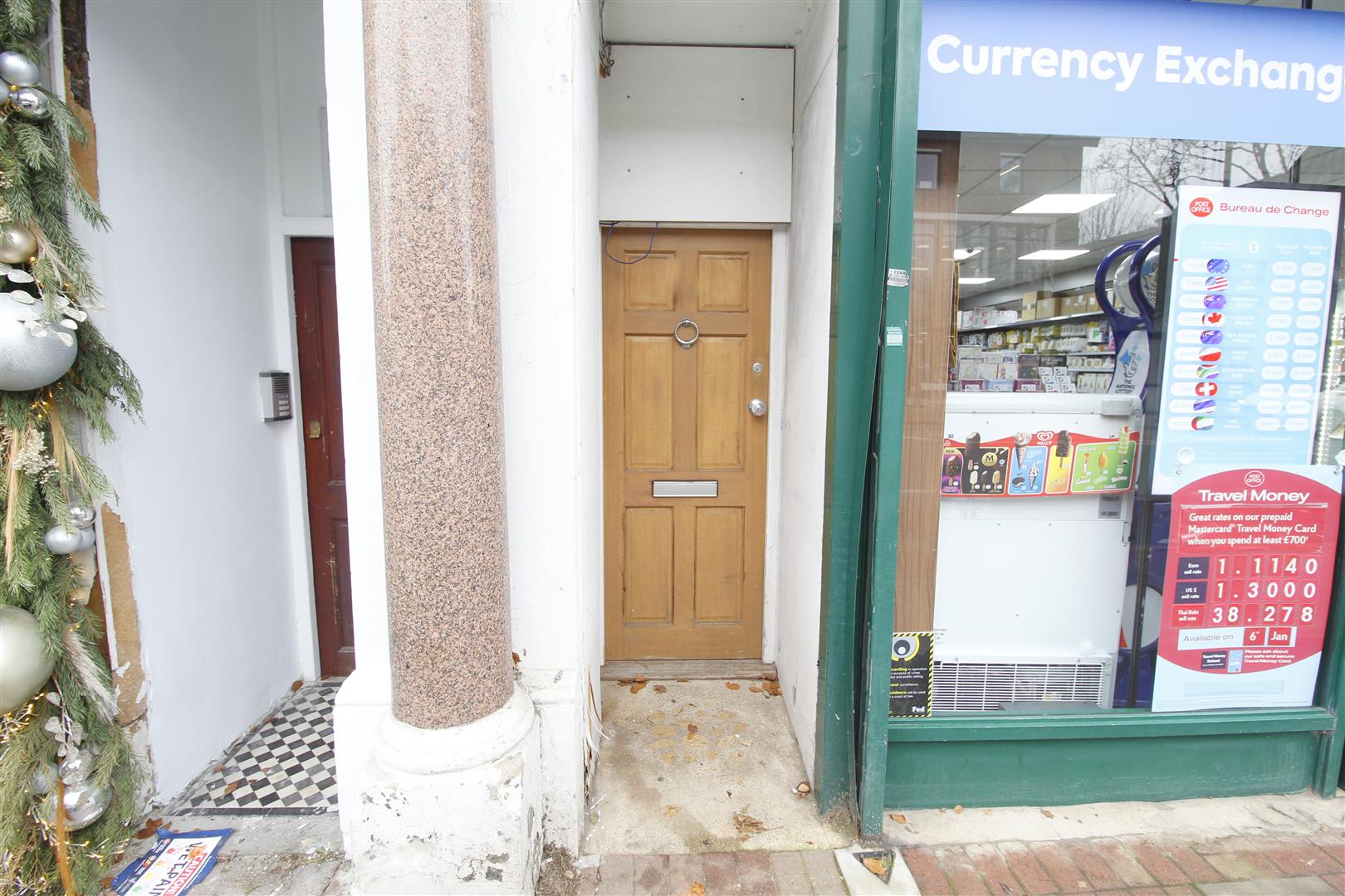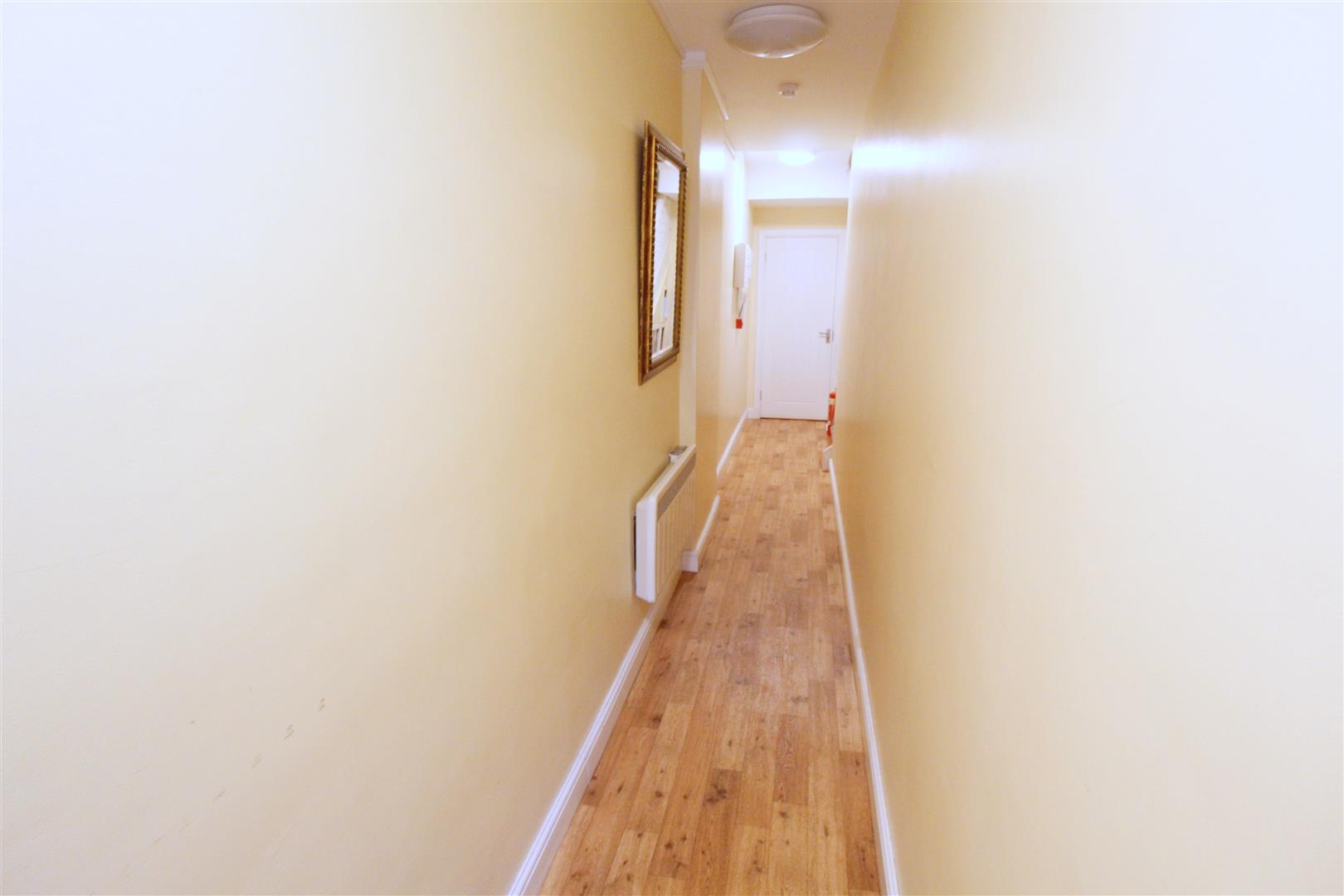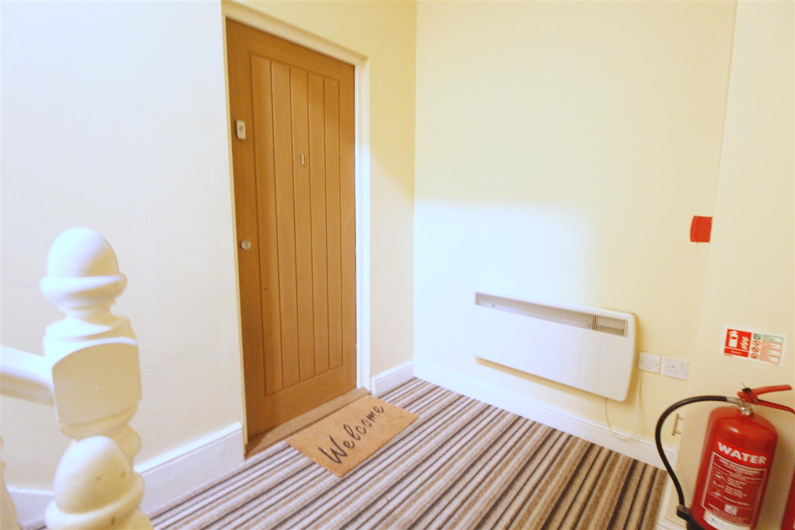 Carpeted communal entrance leading to the first floor landing with wood front door to the apartment.