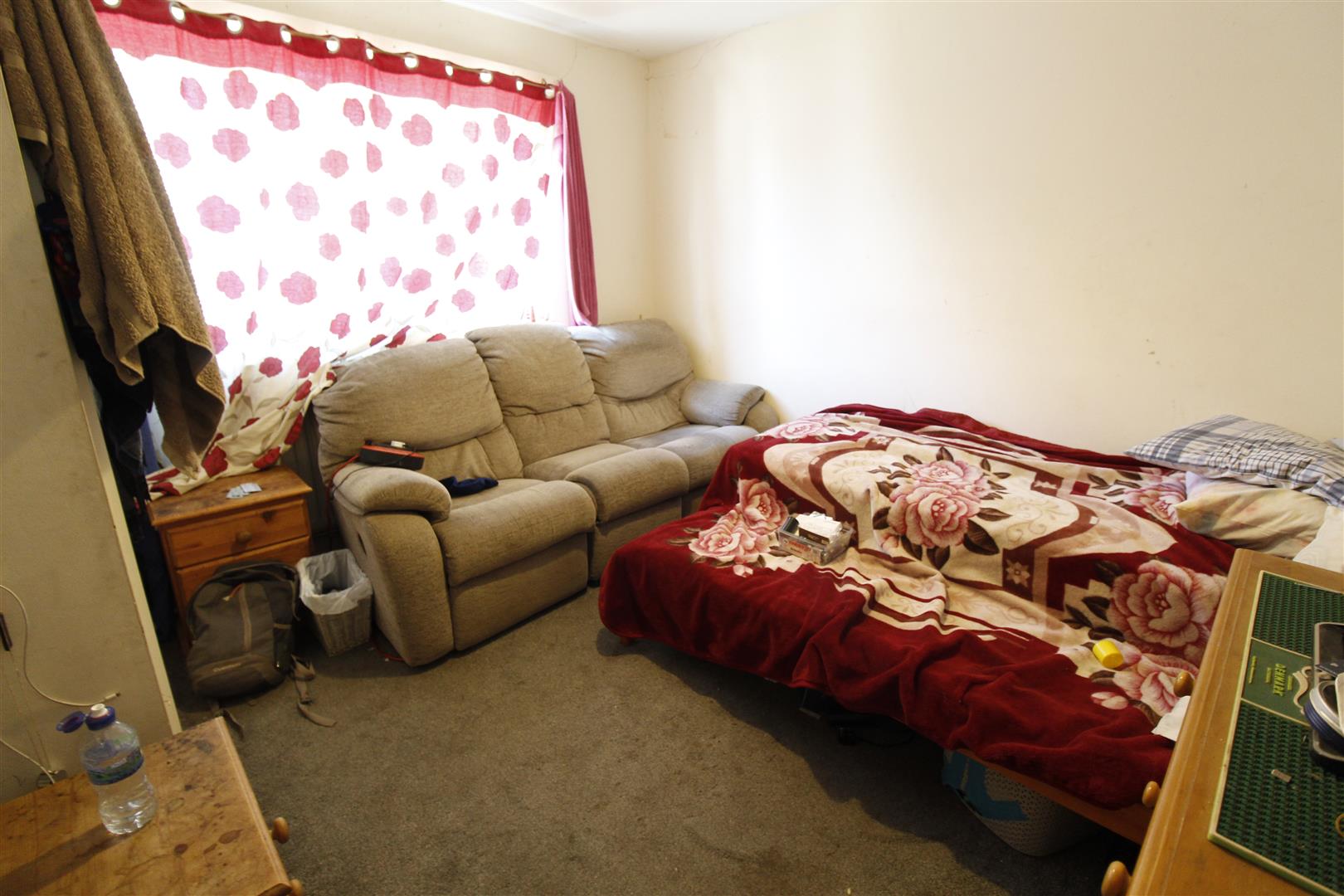 Large double bedroom with a built in cupboard, carpet, radiator, ceiling light and double glazed window overlooking the front entrance.