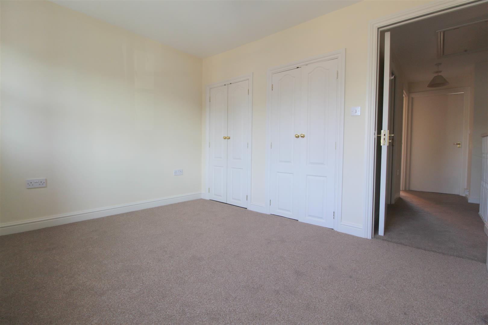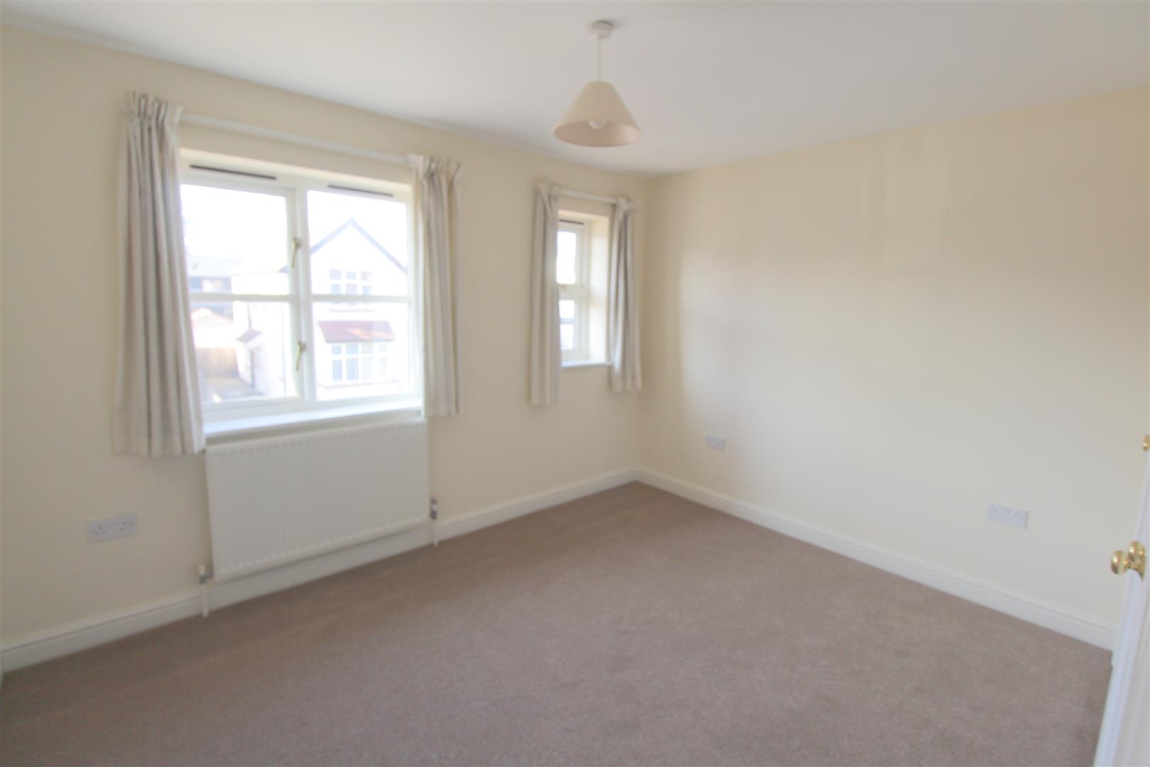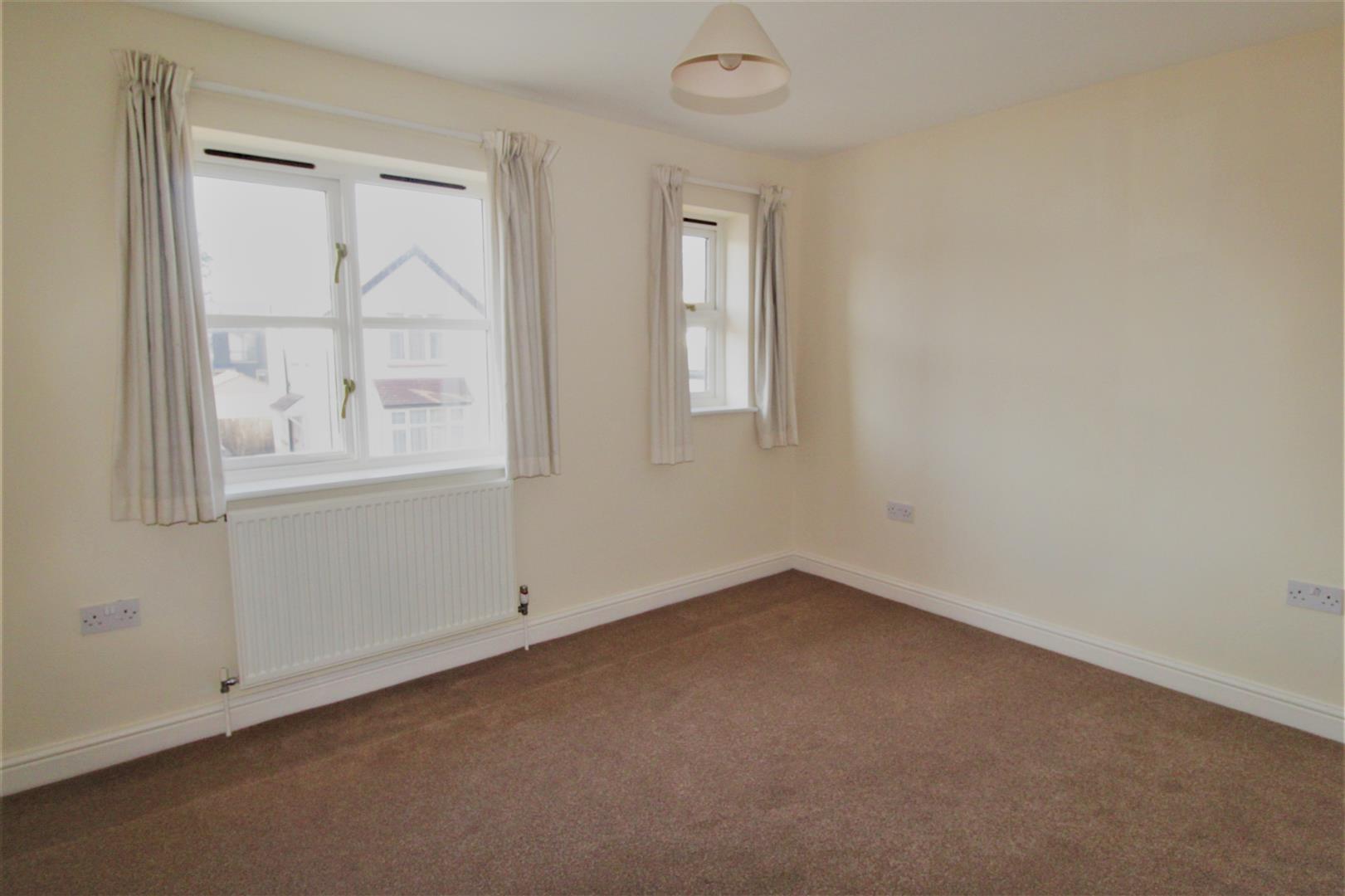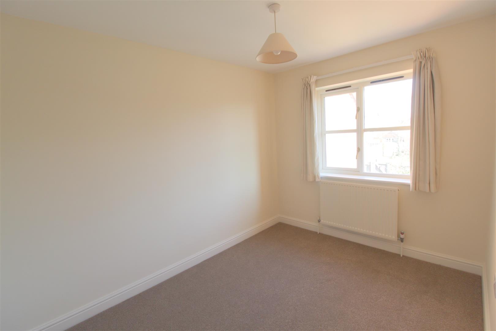 Double bedroom with fitted and neutral carpet, ample electrical sockets, radiator and double glazed window with curtains. Ceiling light with light shade.
