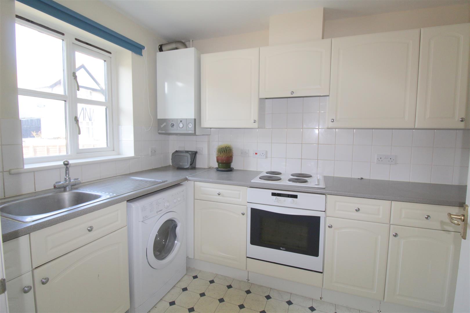 Light and bright kitchen with double glazed window overlooking Chertsey Road, ample matching white eye and base level cupboards. Fitted appliances include an electric oven and hob, built in oven, washing machine, and stainless steel sink, drainer mixer tap situated below the window.