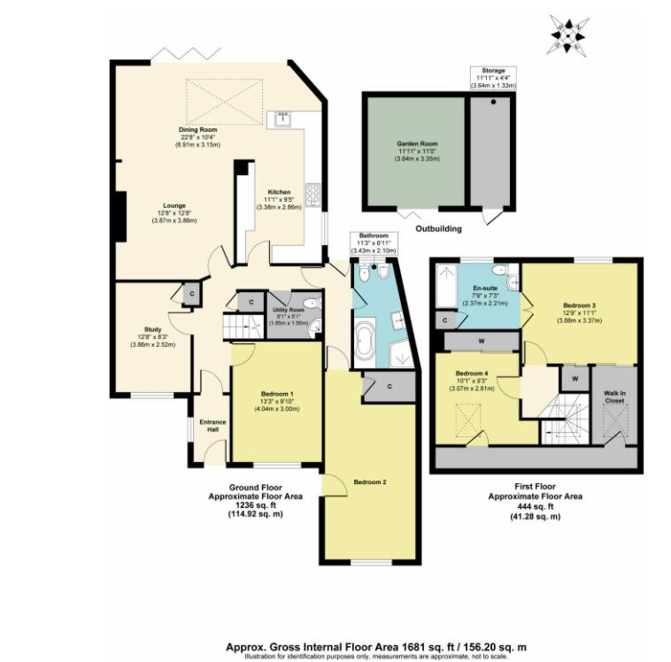 Adjacent to the master bedroom, this versatile room is currently being used as a study but could easily be a fifth bedroom with carpet, radiator and double glazed window with fitted shutter blinds.
