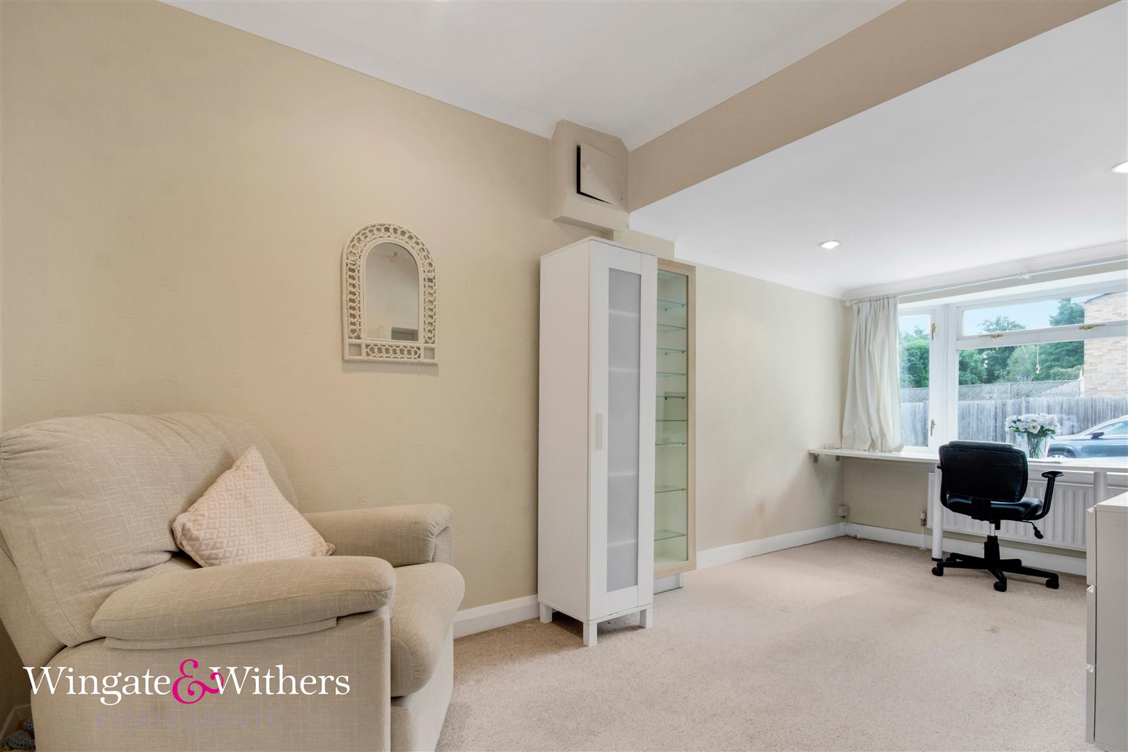 Ample space to create a fourth bedroom or spacious office. Large double glazed window overlooking the front entrance, carpet, radiator and ceiling light.